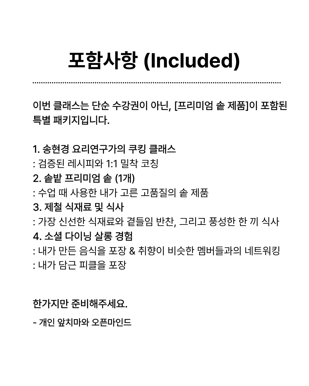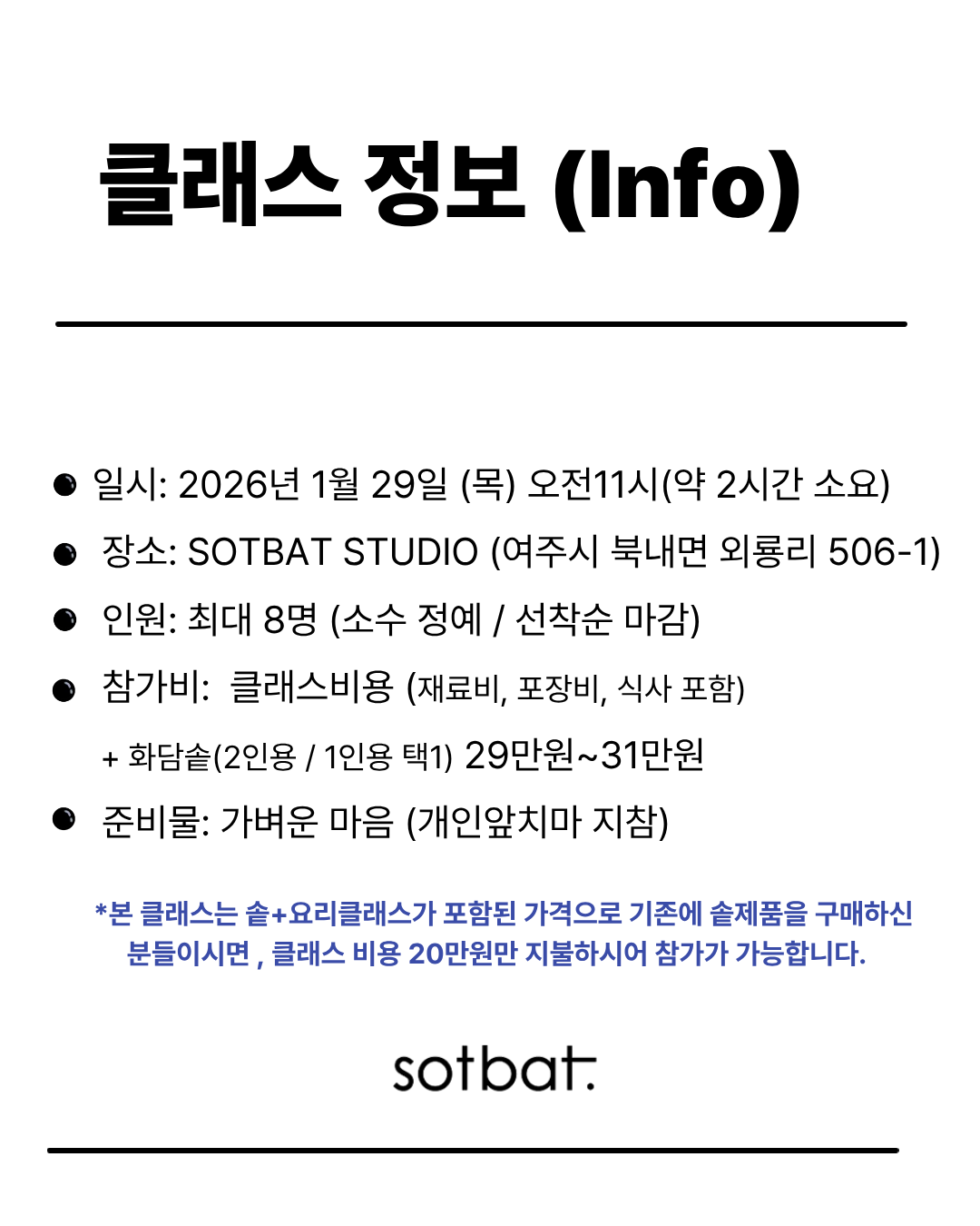 <클래스 비용에는 솥제품이 포함되어있습니다.>