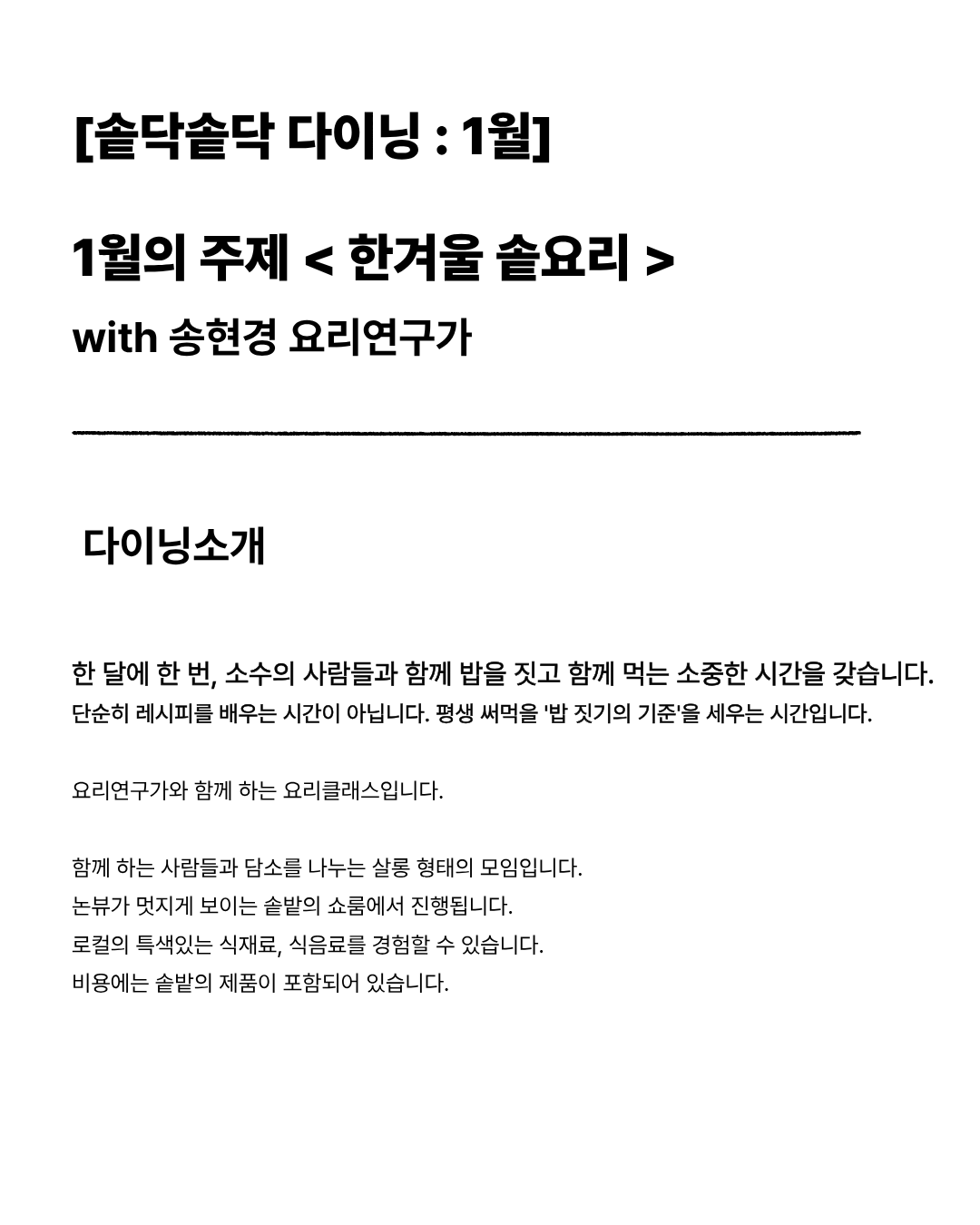 솥과 함께하는 미식경험 요리클래스 (1월29일예정)SOLDOUT