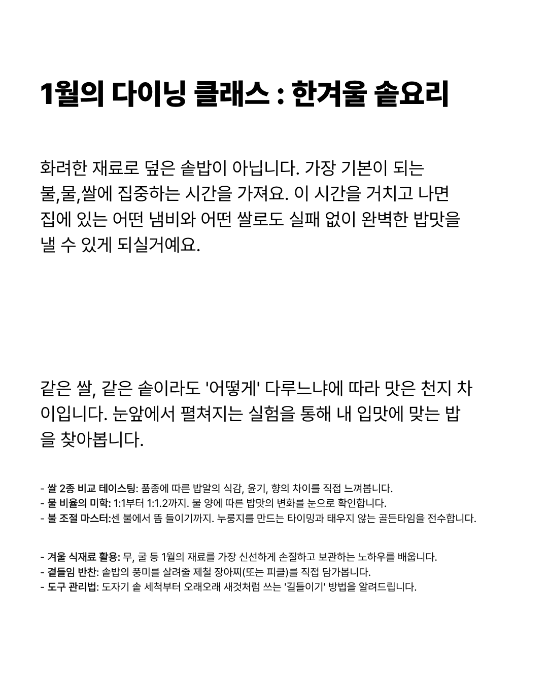 1월의 솥밭 요리클래스